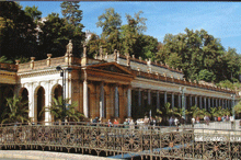Between the late nineteenth century and start of World War I the so-called Golden Age of the Cechy Spa triangle saw the construction of elegant colonnades in the towns. Intended to enable walking and drinking of mineral water directly from the springs, they became part of the spa social life for the rich visitors. These ‘airy temples’ of healing waters took on a life of their own and remain features of the spa towns today. The colonnades are popular with visitors who continue to drink water from the thermal springs.
