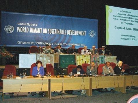At that time, I initiated the Central Asian initiative on sustainable development that was reflected in the final documents of the Johannesburg summit where also organized the side-event on our initiative (photo is attached). In 2003 this initiative was also reflected in the fifth ministerial conference on environment for Europe, which took place in Kyiv. I also organized a regional conference for the environment and water ministers of Central Asia, and we adopted a document “Invitation to partnership” in which we reached out to all Central Asian countries and all donor communities for the practical realization of our Central Asian initiative on sustainable development. This document you can find at the list of the documents adopted by the Ministers in the Kyiv ministeririal conferece in 2003. Later, I also proposed to the Kazakhstan environment minister to organize in Astana the next ministerial meeting for Europe. So, in 2011 such a meeting took place.