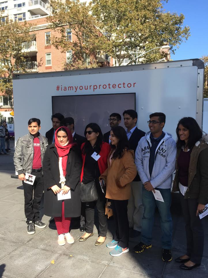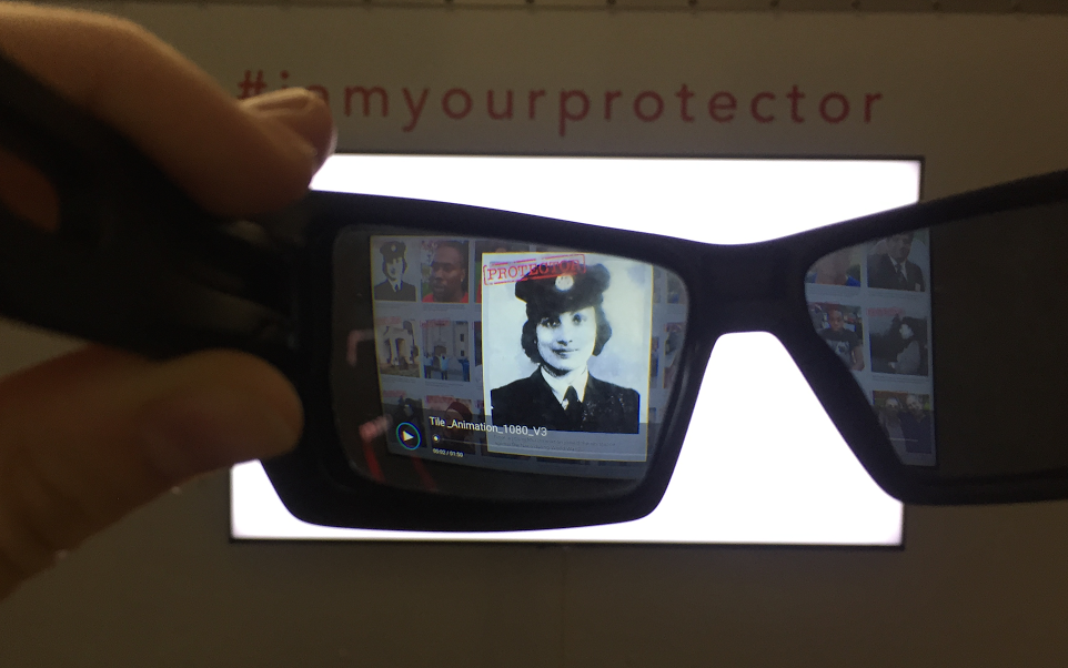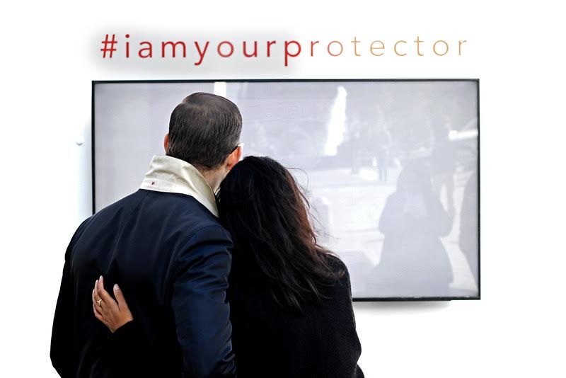 I AM YOUR PROTECTOR featured in New York large screens in key locations -Union Square, Washington Square, Columbus Circle- on which the images are not visible unless seen through special glasses, which were distributed. The format echoed the content - inviting people to “see things differently” and be exposed to stories that challenges perception, misperception and prejudice toward the so called "other".