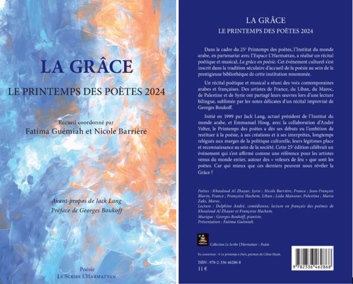 À la suite de l’édition 2O24 du « Printemps des Poètes », placé sous le signe de « La Grâce », les Editions L’Harmattan ont fait paraître un ouvrage intitulé « La Grâce ». Ce recueil sera présenté à l’occasion de la « 41e édition internationale du Marché de la Poésie », qui se tiendra à Paris.