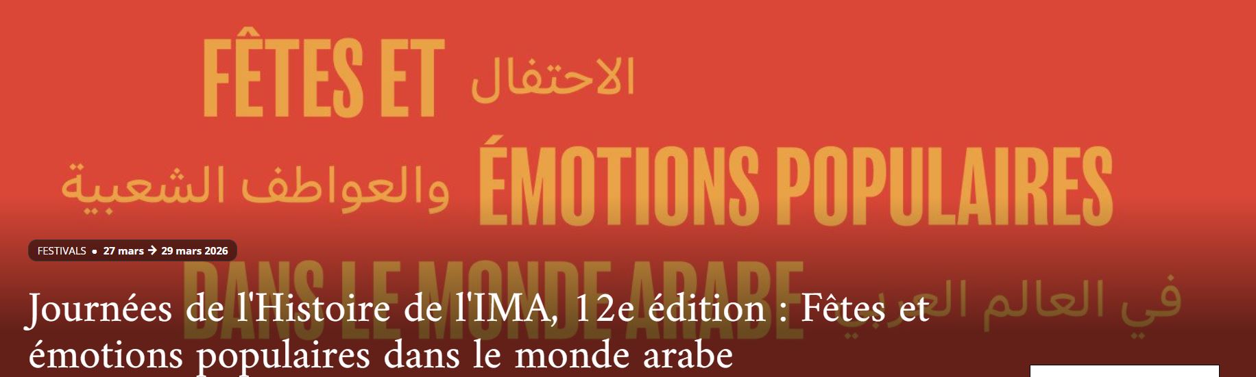 Dans un monde marqué par la fragmentation des récits et l’érosion des cadres multilatéraux, la culture demeure l’un des rares espaces de médiation durable entre les peuples. Du 27 au 29 mars 2026, l’Institut du monde arabe consacre la douzième édition de ses « Journées de l’Histoire » à un thème au cœur des enjeux contemporains de soft power et de diplomatie culturelle « les fêtes et les émotions populaires dans le monde arabe ». Une invitation à penser la célébration collective comme un outil de compréhension mutuelle et de dialogue des civilisations.