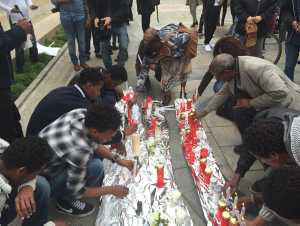The Permanent Mission of the Federal Democratic Republic of Ethiopia to the United Nations office at Geneva and other International Organizations in Switzerland have organized a silent march from the Roundabout of Rive until the Park Bastions, before the Reformation Wall in Geneva on Saturday 25 April 2015 to condemn the barbaric and heinous massacre of 30 Ethiopian Christians in Libya on 19 April 2015 by the terrorist Group called ISIL followed by a candle vigil in memory of the innocent Ethiopians who lost their precious lives. More then 300 people from various countries participated in the March.