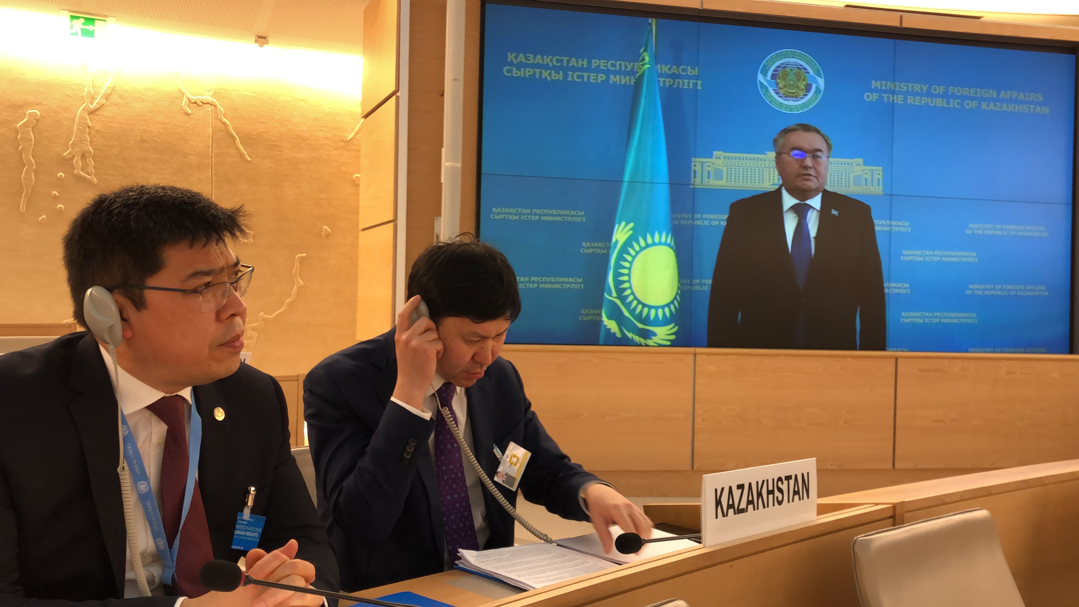In addition, during the HRC session the Permanent Mission of Kazakhstan held a number of events, including a meeting of representatives of Central Asian countries and Mongolia to discuss the best ways for the extended Central Asia region to move towards becoming the region officially free of the death penalty, a panel discussion on "The impact of climate change on the rights of persons in vulnerable situations", as well as a presentation of international social art- project – "World Painting".